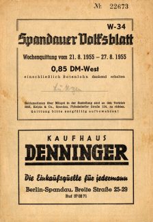 1952 – Akte über den Verbleib der Lizenz des Spandauer Volksblatts bei der Familie Lezinsky
