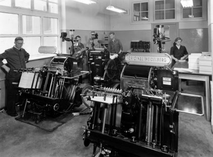 Die Buchdruckerei mit den berühmten „Heidelberger Tiegeln“; fast bis zum Ende des alten Lezinsky Verlags wurden nicht nur Zeitungen produziert.