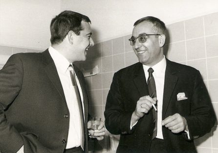Der Spandauer Optiker Horst Kunstmann und der damalige Chefredakteur Hans Höppner bei einer Hochzeit in Spandau in den 50er Jahren