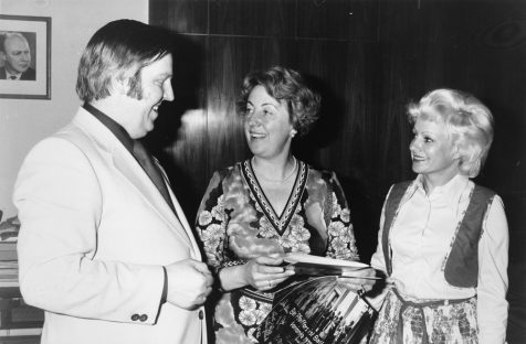Die Verlegerin und Chefredakteuer Hans Höppner bei einer der ersten Leserkreuzfahrten mit der Achille oder der Angelina Lauro, wohl 1976