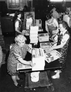 Nächtliches Beistecken von Werbebeilagen in das tagesaktuelle Spandauer Volksblatt; der Ton in der Nachtschicht war berlinerisch direkt.
