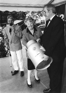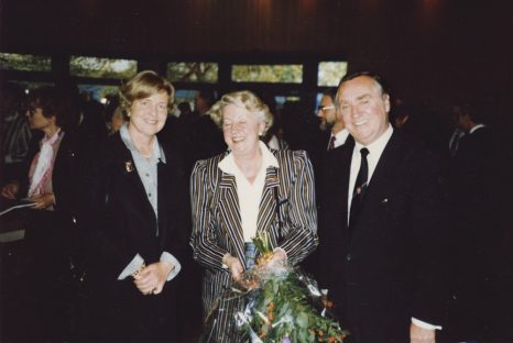 Marianne Freifrau von Weizäcker, die Gattin des damaligen Bundespräsidenten, Ingrid Below-Lezinsky und der Bezirksbürgermeister von Berlin-Spandau, Werner Salomon bei einer Jubiläumsveranstaltung der Lilly Braun Schule 1987; Ingrid Below-Lezinsky war in den 40er Jahren Schülerin dieser ehemaligen Spandauer Mädchenschule.