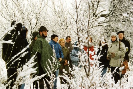 Eine Schule der Demokratie. Olaf Lezinsky (rechts) mit dem Lanschaftsökologen Andreas Kalesse und anderen Mitgliedern des Arbeitskreis Gatow auf einem Bild aus den späten 80er Jahren. Der AK Gatow war ab 1979 eine der erfolgreichsten, überparteilichen und eher bürgerlich geprägten Bürgerinitiativen Berlins. Die Naturschützer verhinderten im ummauerten West Berlin gegen viele Widerstände die immer wieder geplante Bebauung der Gatower Felder.