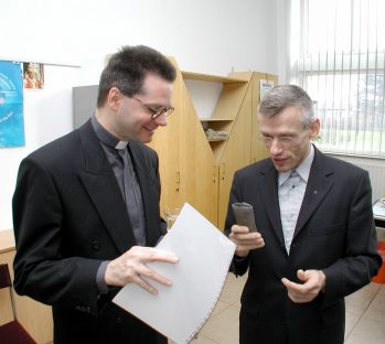 Georg Kardinal Sterzinsky (verstorben 2011) und der Geschäftsführer der Erzbischöflichen Vermögensverwaltung Dr. Raimar Witzel bei der Einweihung der neuen Redaktionsräume der Katholischen Sonntagszeitung Berlin.
