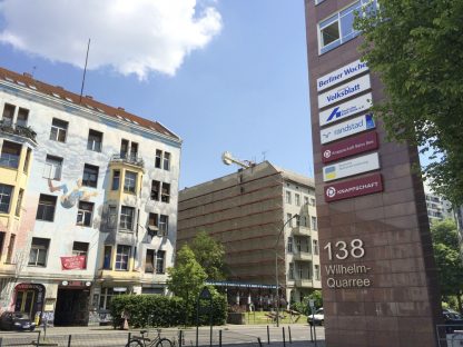 Damit hätte wohl der Gründer und Erstverleger Erich Lezinsky 1946 nicht gerechnet: dass der Schriftzug SPANDAUER VOLKSBLATT im 21. Jahrhundert an der Fassade eines schicken Bürohauses im neuen Berlin-Kreuzberg prangt. Hier residiert der Berliner Wochenblatt Verlag. Ehemals Axel Springer, nun Funke Medien Gruppe (ehemals WAZ).