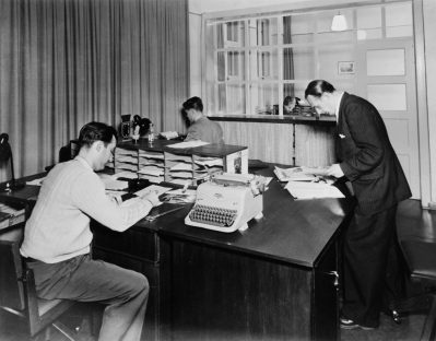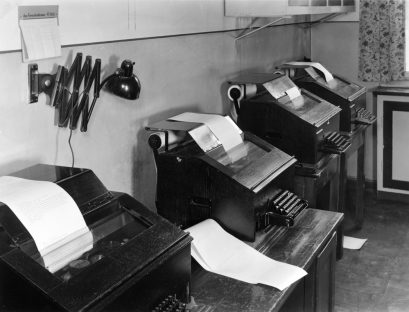 Nächtliches Beistecken von Werbebeilagen in das tagesaktuelle Spandauer Volksblatt; der Ton in der Nachtschicht war berlinerisch direkt.
