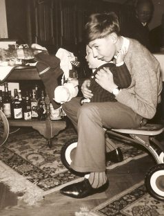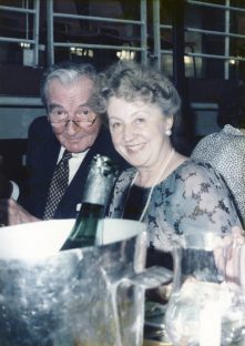 Ludwig Metzler dankt Urenkelin Kathrin Lezinsky für ihre Gratulation und ein Geschenk, das sie soeben aus Anlass der Feier seines 80. Geburtstags überreicht hat. Ludwig Metzler (1899 – 1989) stammte aus dem Saarland. In Berlin betrieb er in den 20er und 30er Jahren u.a. eine bedeutende Kellner- und Barkeepervermittlung und war für viele bedeutende Hotels und den Genfer Verband / Internationale Barkeeper Union tätig. Nach dem Krieg leitete er zeitweise die britische Offiziersmesse in Ruhleben und baute später in Spandau das „Haus Metzler“ am Askanierring als stadtbekanntes Speiselokal auf. Er soll Erich Lezinsky mit einem Kredit beim Aufbau des Spandauer Volksblatt unterstützt haben.