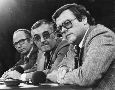 Manfred Seiffe (heute ein vorsitzender Richter am Landgericht Berlin), Otto Schilly und Olaf Lezinsky; Schilly war zu einem Wahlkampfbesuch für die Berliner Grünen (damals AL) nach Spandau gekomen und gab dem Spandauer Volksblatt ein Interview. 1980/81