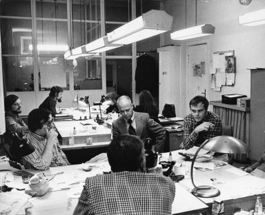 Chefredakteuer Hans Höpner im Gespräch mit Günther Grass; die Zusammenarbeit scheiterte an unterschiedlichen Erwartungshaltungen der Aktion. Einige Oppositionelle wollten das Spandauer Volkksblatt zum Anti-Axel-Springer-Titel umgestalten. Das scheiterte auch an mangelndem Zuspruch bei den Lesern.