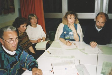Eine Schule der Demokratie. Olaf Lezinsky (rechts) mit dem Lanschaftsökologen Andreas Kalesse und anderen Mitgliedern des Arbeitskreis Gatow auf einem Bild aus den späten 80er Jahren. Der AK Gatow war ab 1979 eine der erfolgreichsten, überparteilichen und eher bürgerlich geprägten Bürgerinitiativen Berlins. Die Naturschützer verhinderten im ummauerten West Berlin gegen viele Widerstände die immer wieder geplante Bebauung der Gatower Felder.