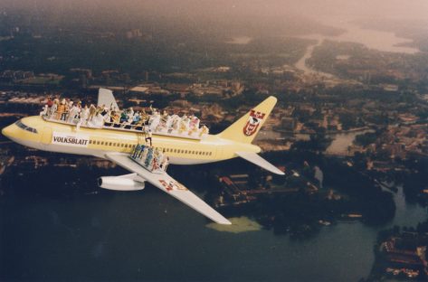 Rainer Lezinskys 40er Geburtstag 1990 kurz nach dem Mauerfall; Olaf Lezinsky hält eine Ansprache im ehemaligen „Stasiheim“ auf der Glienicker Seite des Glienicker Sees.
