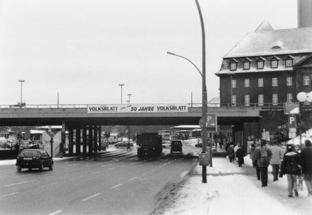 1966: Günther Grass verkauft das Spandauer Volksblatt in „Berlin“ am Kurfürstendamm. Damals wollten eine Reihe linksliberaler Prominenter das Spandauer Volksblatt als publizistische Alternative zur Springerpresse ausbauen.