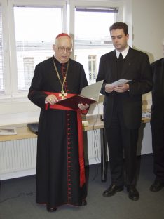 Georg Kardinal Sterzinsky (verstorben 2011) und der Geschäftsführer der Erzbischöflichen Vermögensverwaltung Dr. Raimar Witzel bei der Einweihung der neuen Redaktionsräume der Katholischen Sonntagszeitung Berlin.